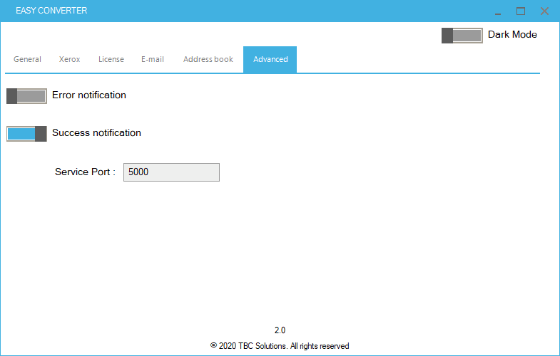 You can manage the display of different notifications. The service port can be modified. In this case, consider opening the new port in your antivirus.