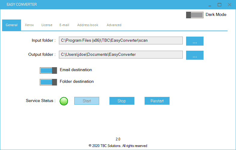 In the EasyConverter application on the MFP, you can choose one of the subfolders of the output folder as the destination of the Office document.